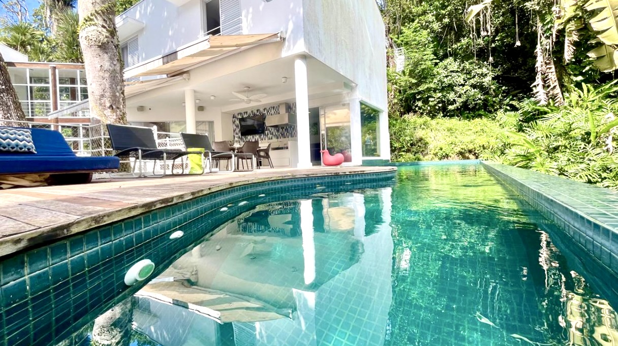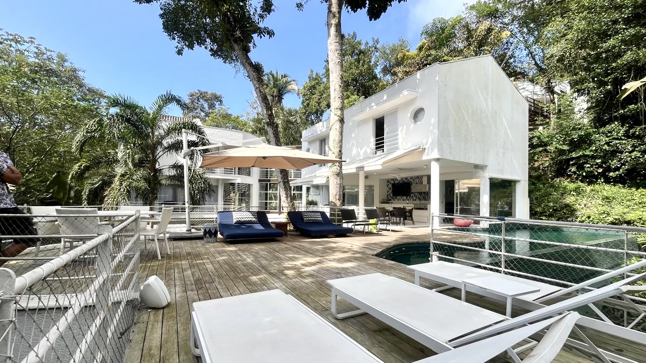 Descubra o privilégio de viver em uma das localizações mais desejadas do litoral paulista. Esta espetacular casa no Condomínio Iporanga combina elegância, conforto e uma conexão única com a natureza, oferecendo o refúgio perfeito para momentos inesquecíveis com família e amigos. Com um terreno de 1.200m² e 500m² de área construída, esta propriedade foi projetada para proporcionar bem-estar e funcionalidade em cada detalhe. A apenas 500 metros da praia, a residência oferece uma experiência única de moradia em um dos condomínios mais exclusivos do Guarujá. A casa conta com quatro suítes espaçosas, garantindo privacidade e conforto para toda a família. Os ambientes de convívio são um convite ao relaxamento e ao entretenimento, com uma ampla área social composta por salas de estar, jantar e TV, todas decoradas com sofisticação e aconchego. O destaque fica por conta da varanda com espaço gourmet totalmente integrado à cozinha e ao deck, proporcionando momentos únicos para reunir amigos e familiares. O amplo deck com piscina completa a experiência de lazer, criando um cenário perfeito para apreciar a exuberante paisagem ao redor. Além de toda a estrutura impecável, a residência está situada em um dos melhores pontos do Condomínio Iporanga, onde a natureza se faz presente em cada detalhe, oferecendo segurança, exclusividade e qualidade de vida. Esta é uma oportunidade única de adquirir um imóvel diferenciado, em um dos locais mais valorizados do litoral paulista. Entre em contato para mais informações e agende uma visita!